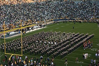 The Notre Dame Marching Band, founded in 1845, is the oldest university marching band in continuous existence in the country. From its beginnings as the Notre Dame Cornet Band, it grew into a symbol of spirit and tradition, playing at every home football game since the program’s very first in 1887. The sight and sound of the band — its drum cadence, the brass fanfares, and the unity of its formations — were an inseparable part of every football Saturday.