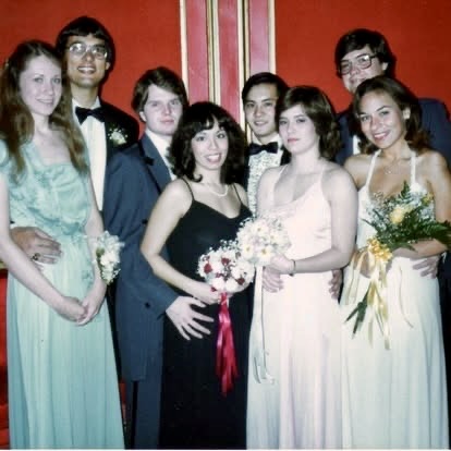 Thanksgiving was a repeat trip to Mariann’s family home in Wheaton, Illinois. That year, Mrs. Schmitz decided to have the meal catered, which felt like a real treat. I slept downstairs again in John Jr.’s wood-paneled basement bedroom, complete with its enormous waterbed. Mariann's roommate, Bernadette Young, joined us for Thanksgiving in Wheaton.